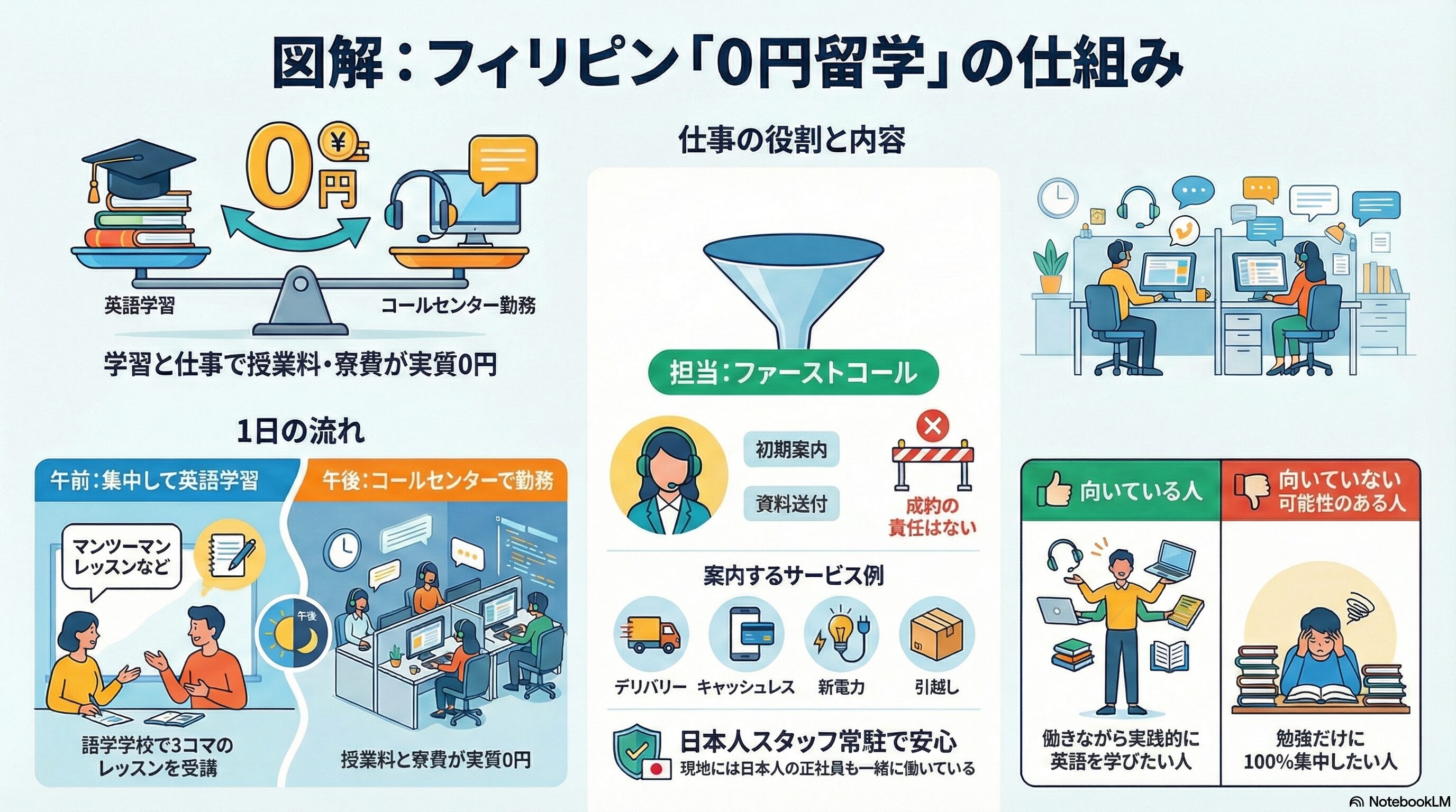 - 0円留学の仕事はどのような内容ですか?