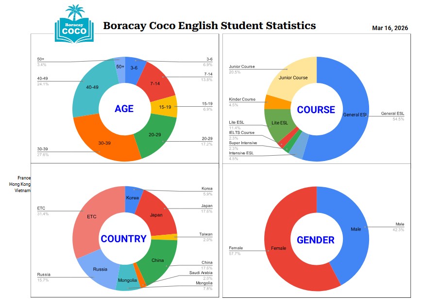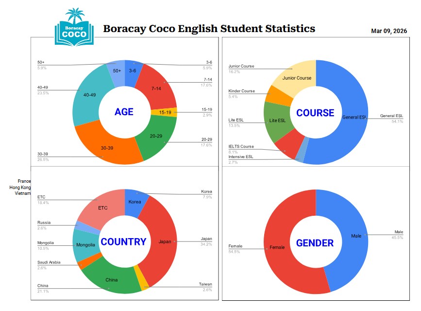 Boracay Coco Englishは、世界的に有名なビーチのあるボラカイ島にある語学学校です。