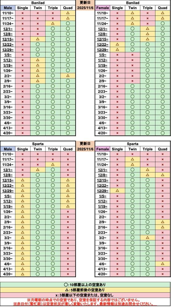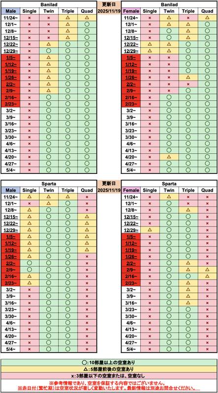 入寮日/退寮日・金曜日入寮 → 自動的に前泊扱いとなり、土曜日11:00までに退寮 ※前泊は1500ペソ