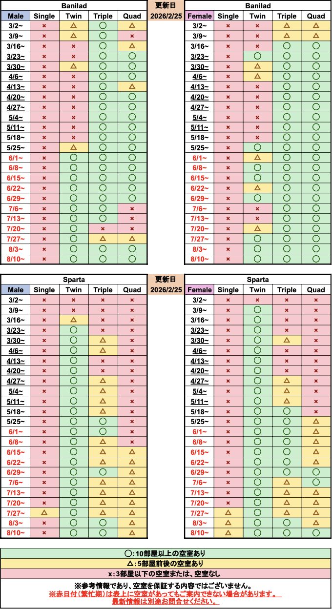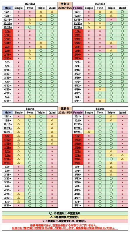 このたび、フィリピン・セブ地域におきまして台風の接近に伴い、気象状況の悪化が予想されております。つきましては、学生の安全を最優先とし、11月4日(火)を臨時休校とする措置を実施いたします。 - 2025年10月21日:空き室状況/国籍比率
