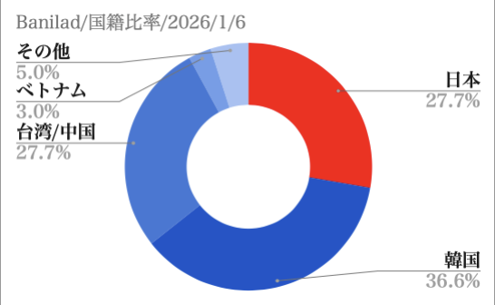 - 2026年1月6日:空き室状況 国籍比率