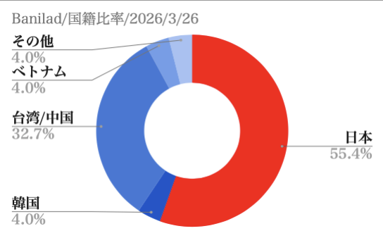 - 2026年3月26日:空き室状況 国籍比率