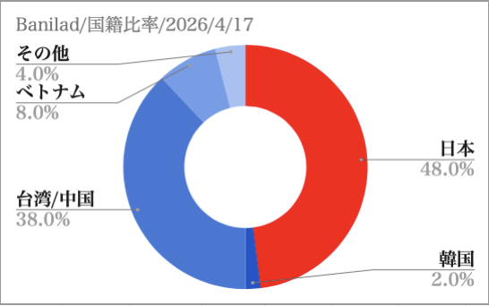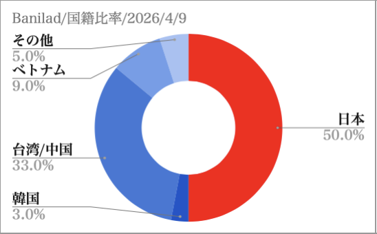 - 2026年4月9日:空き室状況 国籍比率