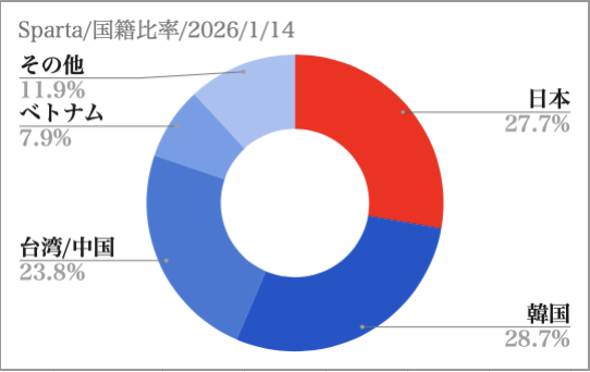 - 2026年1月14日:空き室状況 国籍比率