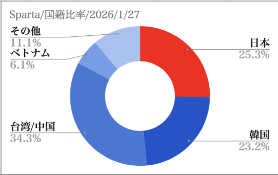 - 2026年1月27日:空き室状況 国籍比率