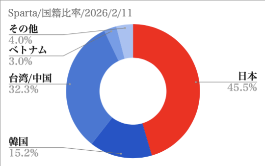 - 2026年2月11日:空き室状況 国籍比率