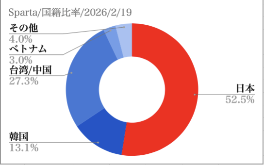 - 2026年2月19日:空き室状況 国籍比率