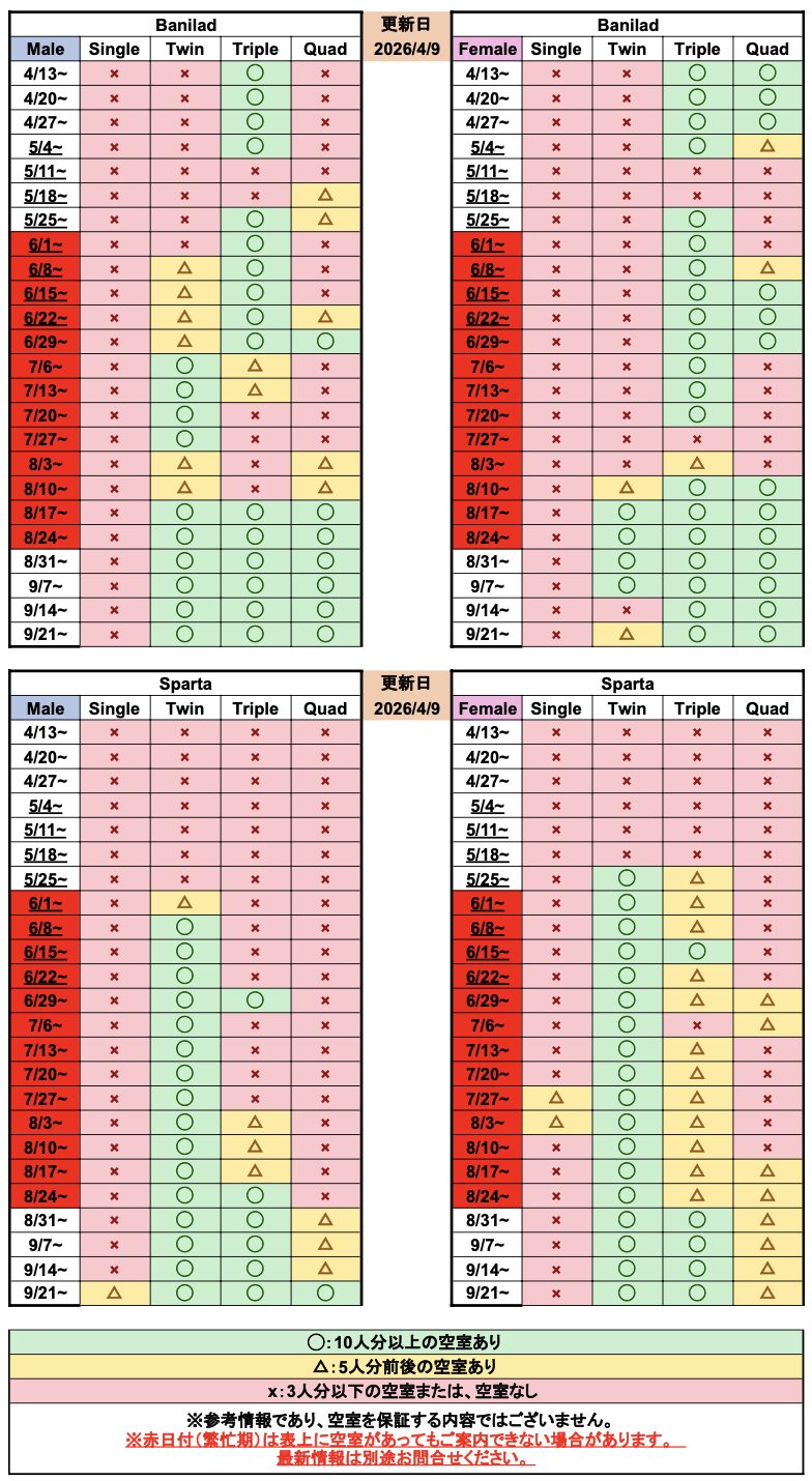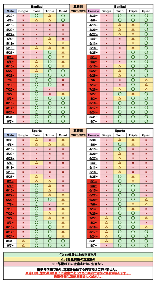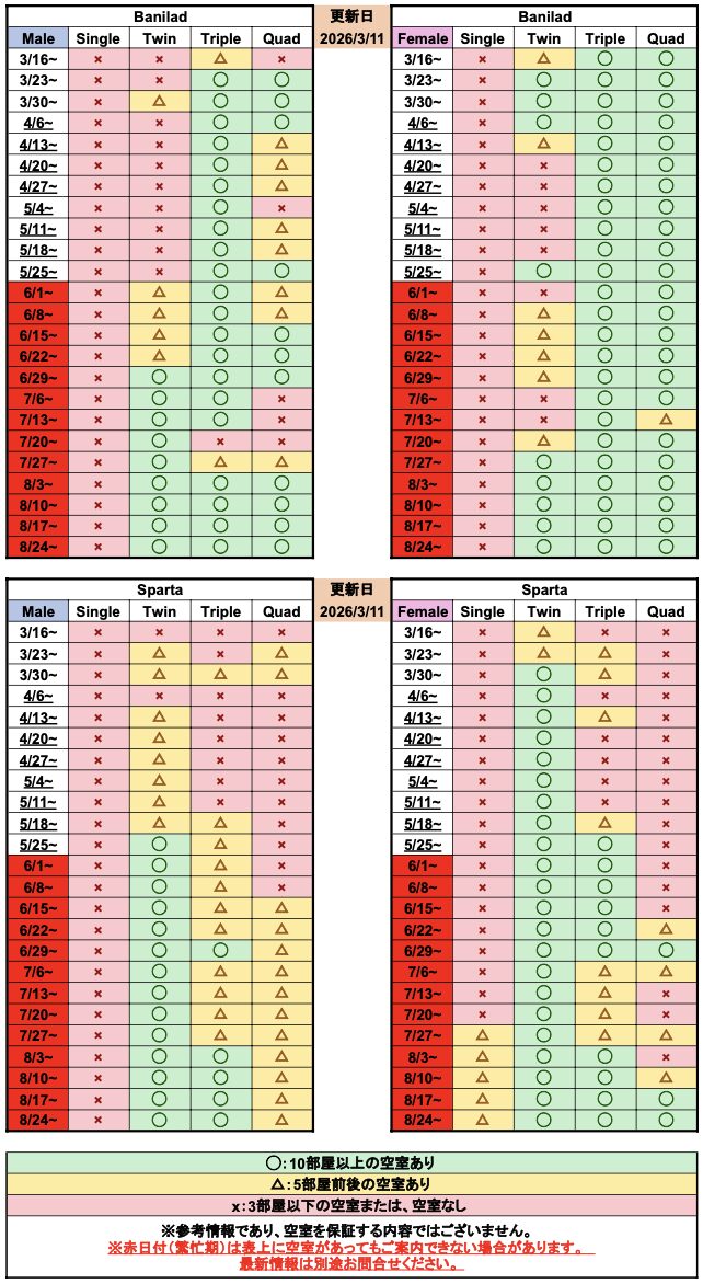 - 2026年3月11日:空き室状況 空き室状況