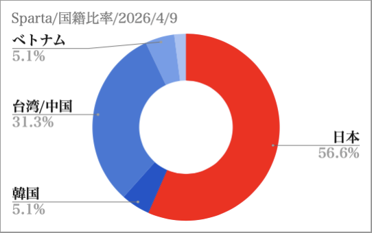 - 2026年4月9日:空き室状況 国籍比率