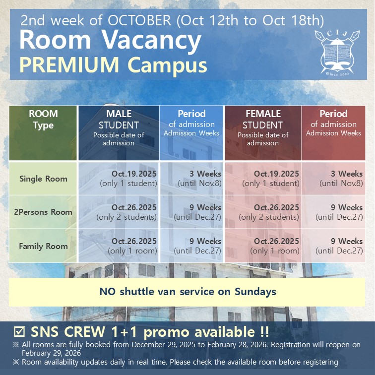 • 登録時には入学金150ドルとSNS CREW費用150ドル(合計300ドル)が必要