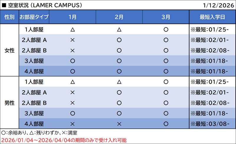 La Merキャンパス空き室状況 国籍比率 - 2025年12月26:国籍比率・空室状況など