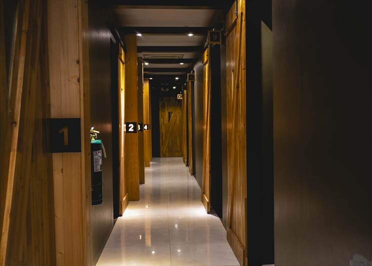 カプセルルームは、身長185センチの高身長の男性でも、余裕で足を伸ばせるほどの広さです。