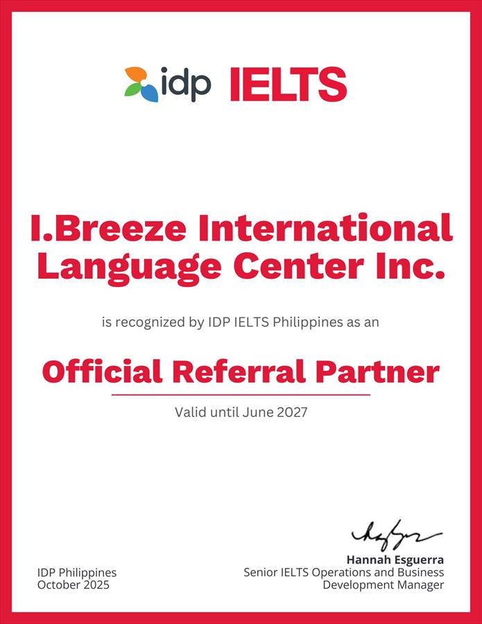 I.BREEZEは引き続きIDP Cebuとの緊密な連携を維持し、IELTS教育の最新基準や傾向に常に対応できるようプログラム内容をアップデートしていきます。これにより、学生のスコア向上と試験対策の質の向上をさらに図ります。資料はこちら - 2025年10月13日:新プラン「IELTS All-in-One Package 1 & 2」のご案内