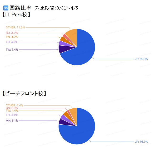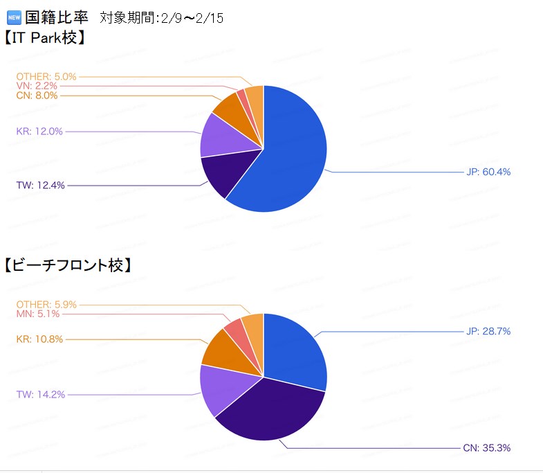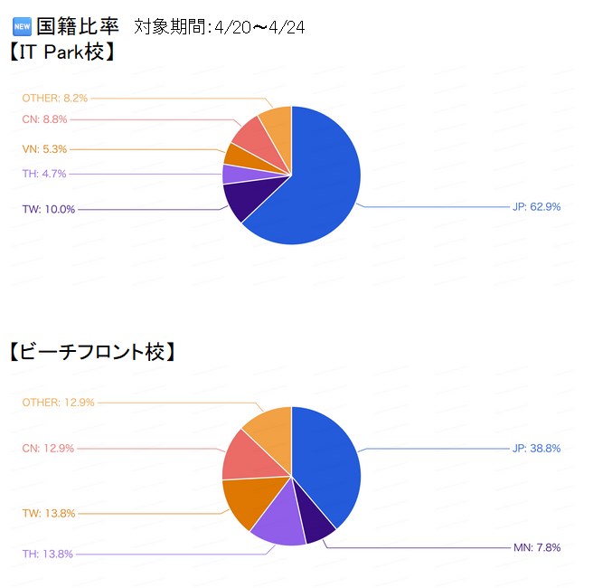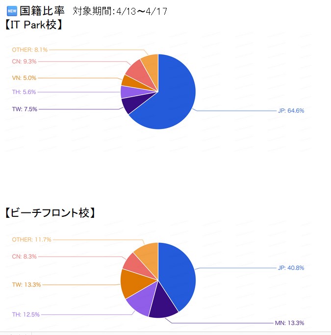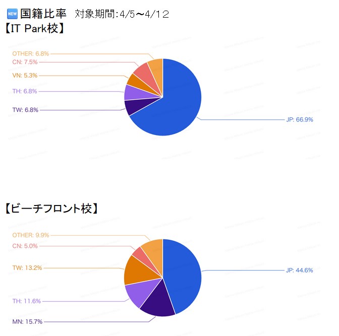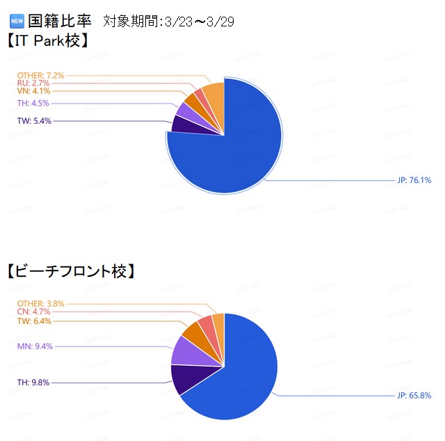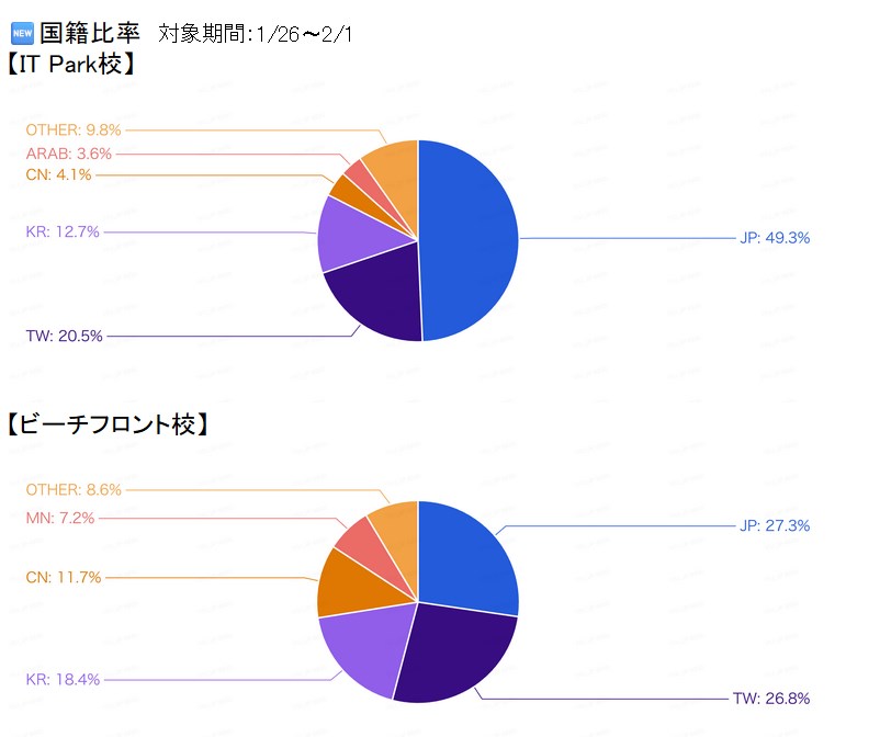 空き室状況 国籍比率 - 2025年12月19日:入校日前日・卒業日翌日のお食事提供について