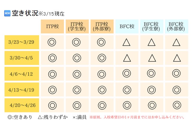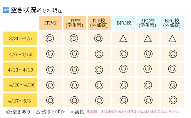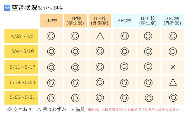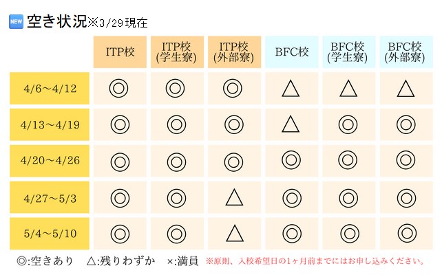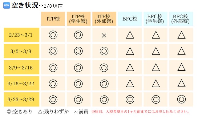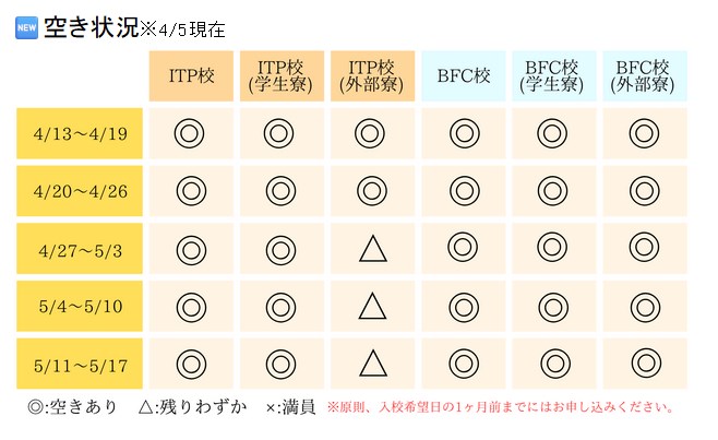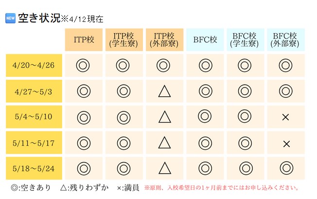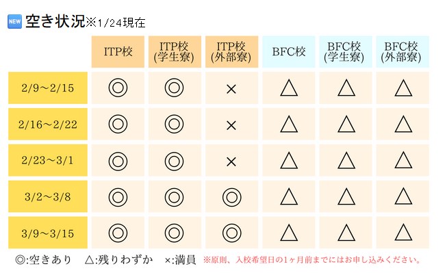1月31日まで申込、5月31日まで入校が対象。 - 2026年1月11日:空き室状況など