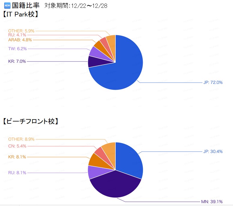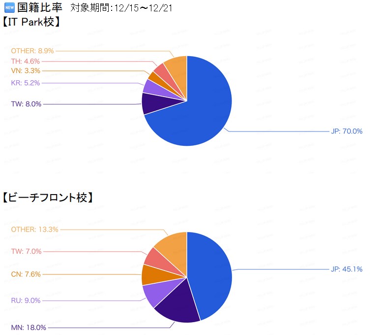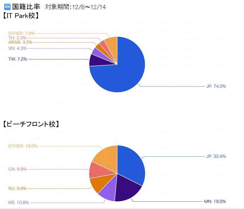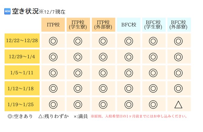 空き室状況 国籍比率 - 2025年12月19日:入校日前日・卒業日翌日のお食事提供について