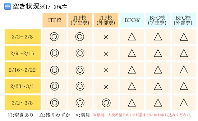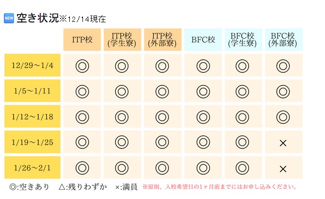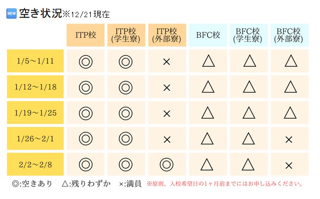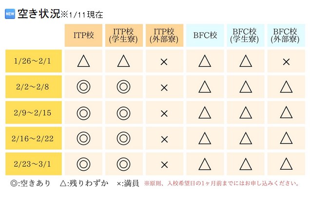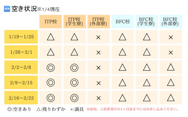 1月31日まで申込、5月31日まで入校が対象。 - 2026年1月11日:空き室状況など
